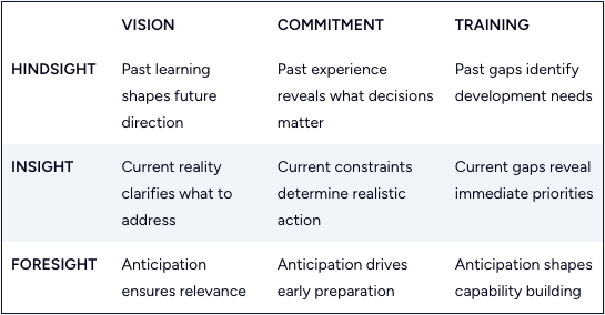 Extraordinary Strategists confidently lead by learning from hindsight, guiding with insight, and acting with foresight to direct the company along a clear path to its desired future.